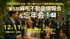 第1回~第3回は総額100億円以上の不動産情報がシェアされ、「案件成約にこだわる情報交換会」「すぐに案件化できる」と好評の「不動産情報交換会&交流会」の第4回を11月20日(木)に開催いたします!今回参加の方から11月後半に大阪で開催される「大阪不動産情報会&交流会」とクロスして東京大阪双方の情報を共有され、更に物件情報が充実いたします!